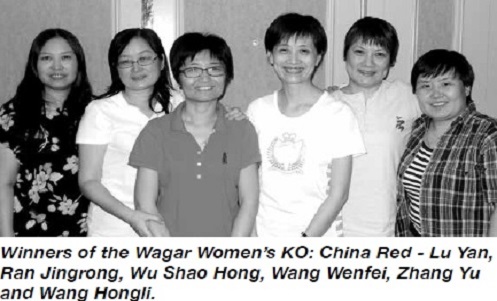 中国红队,在队长王文霏的带领下,以极微弱的优势(少于2IMPs)赢得了2014年北美夏季大赛Wagar女子队式赛冠军。